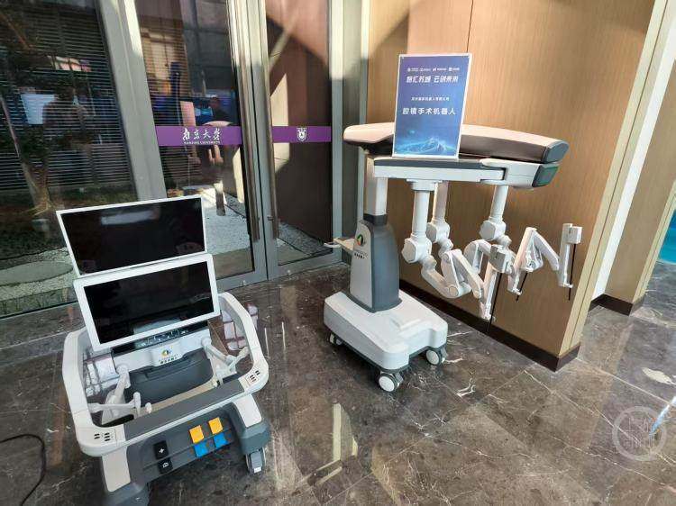 现场展示的手术机器东谈主模子。上游新闻记者 时婷婷/摄