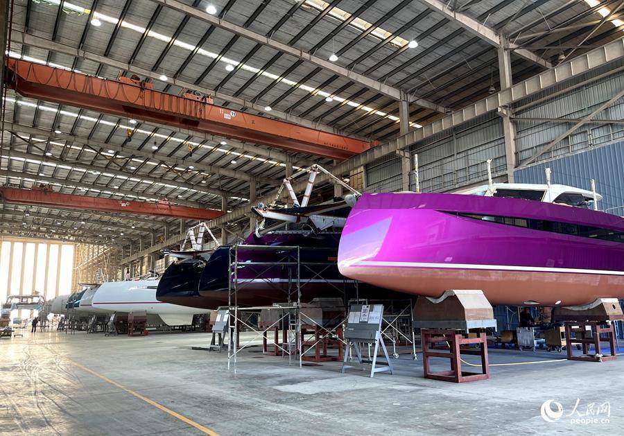 哈德森(福建)游艇有限公司,坐褥线上排满了一艘艘在建的游艇。东谈主民网记者 陈蓝燕摄