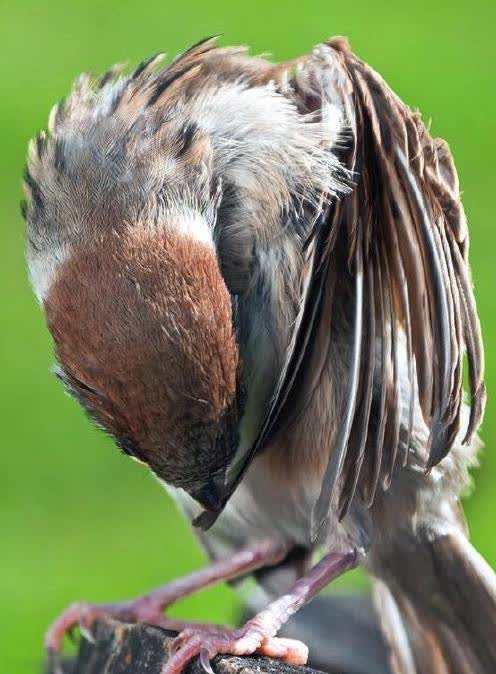 鸟类对羽毛珍藏有加,频繁清洁收拾。它们的羽毛一年四季保捏如新,晚上睡前会梳理各个部分去除灰尘,并诈欺尾部的油脂腺分泌物涂抹羽毛,以保护其在最好现象,如同东说念主收拾爱车不异。